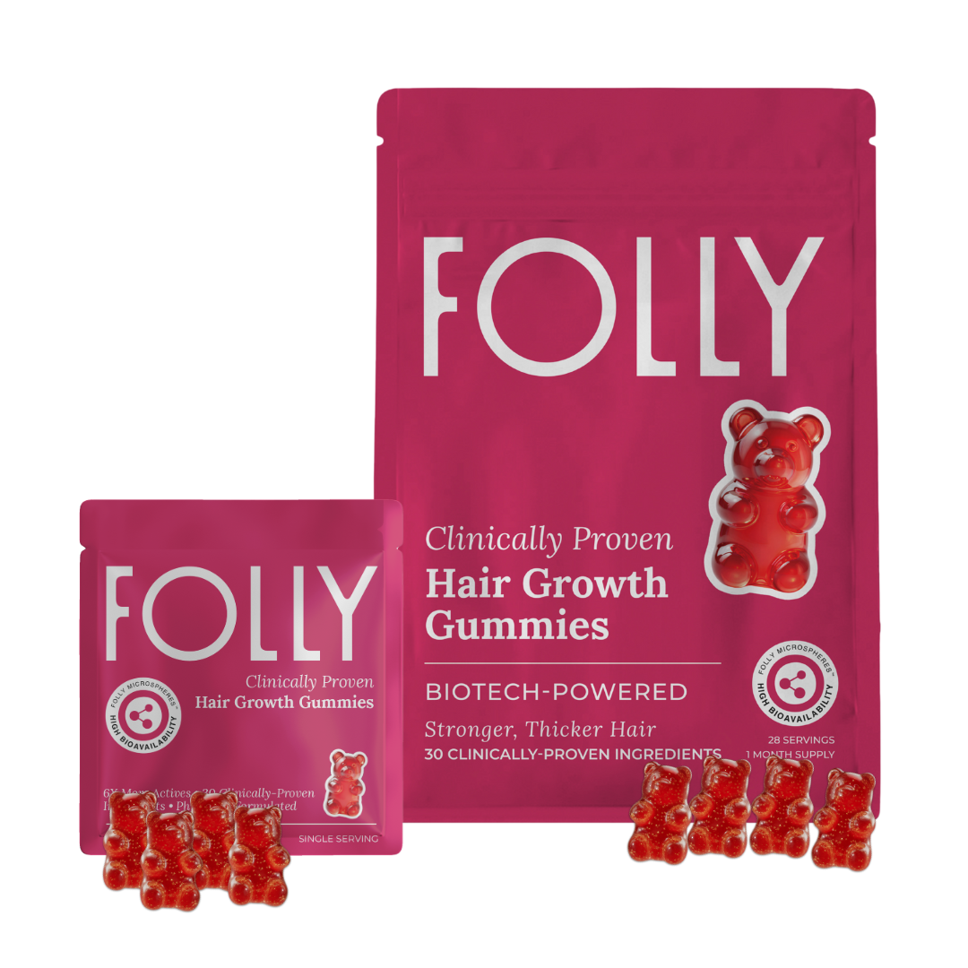 Folly is the first biotech-powered gummy clinically designed to combat hair thinning. Backed by Folly MicroSphere™ Technology, it protects fragile nutrients, ensures sustained release, and delivers results you can actually see.