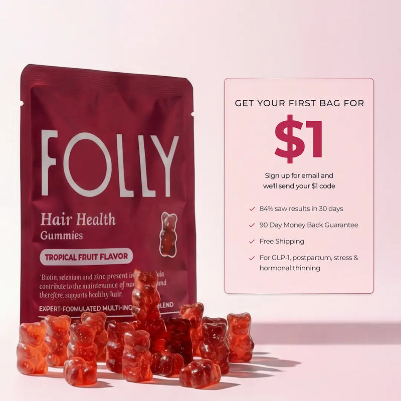 Folly Hair Complex: MSM, Pumpkin Seed Oil, Coconut Oil Powder, Nettle Root, Hyaluronic Acid, Myo-Inositol, Amino Acids (Proline, Lysine, Methionine, Arginine)