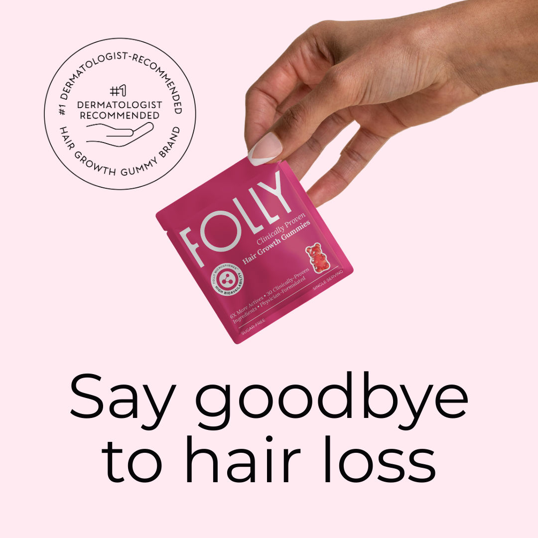 Say goodbye to pill fatigue. Folly packs everything your follicles need into a delicious, once-a-day gummy that works smarter — and harder — than anything else out there.